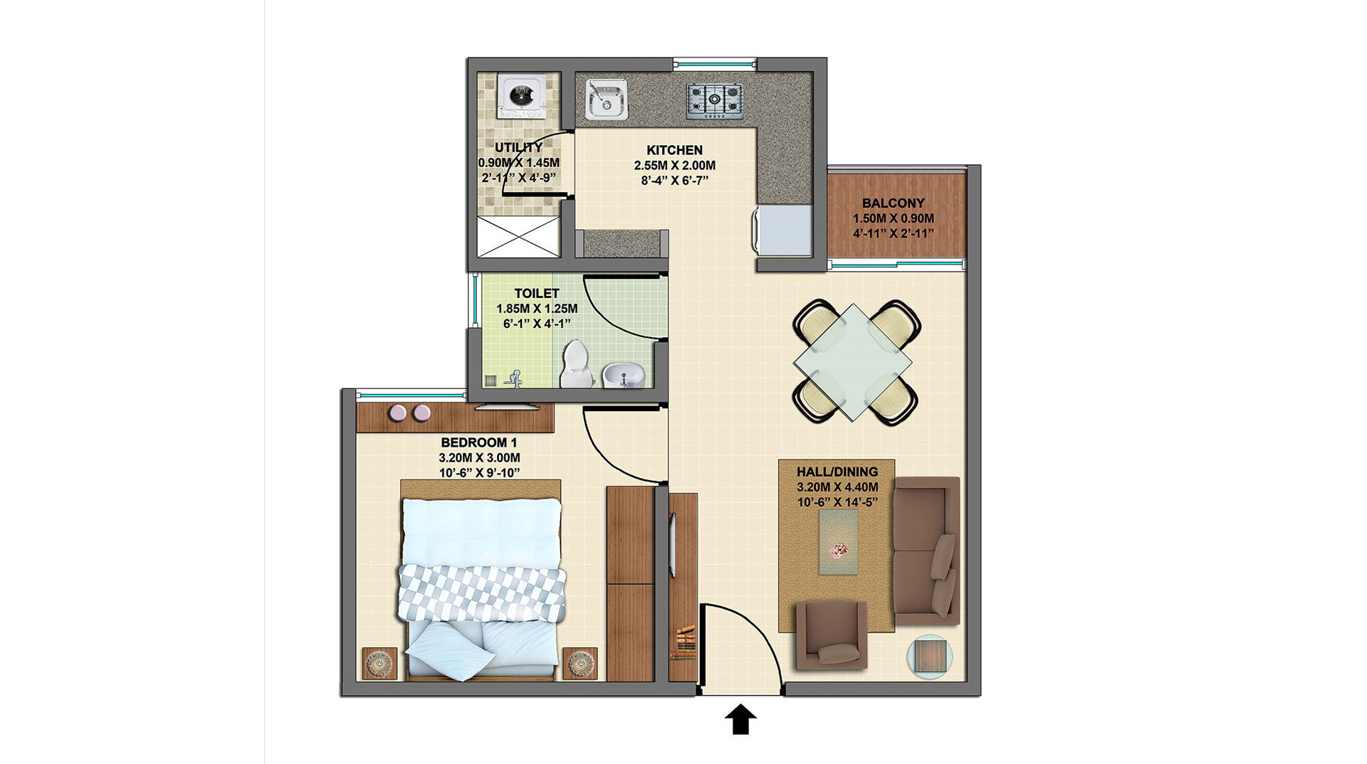 The project primarily offers 1 BHK apartments. The 1 BHK units have an approximate area of 540 sq. ft., ands are designed for efficient space utilization with modern interiors and picturesque Juliet balconies.